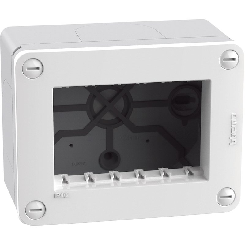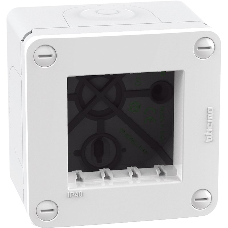 Insieme al supporto, altro elemento cardine è la nuova IdroGO: una scatola superficiale unita alla nuova cover waterproof, che insieme permettono di aumentare il grado di impermeabilità da IP40 a IP55.