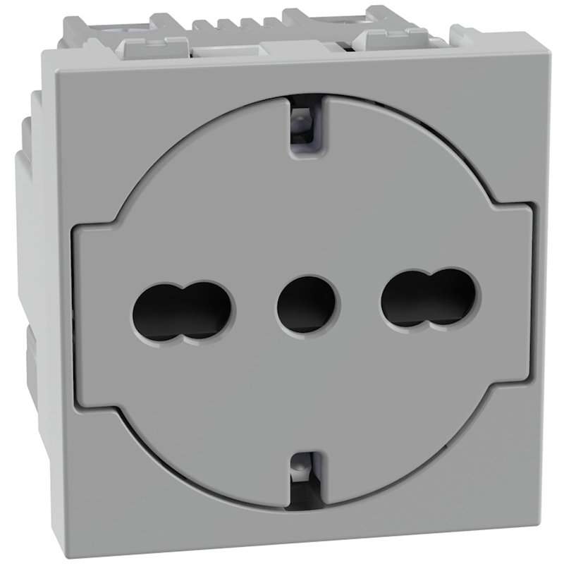 Il grigio, più adatto per ambienti distintivi, è disponibile con comandi assiali, che rendono la placca perfettamente piatta.