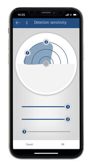 La versione D180i introduce la programmazione tramite app, che semplifica e velocizza la configurazione eliminando i potenziometri manuali. È possibile delimitare digitalmente l'area di rilevamento per evitare attivazioni indesiderate dovute a traffico, vicini o alberi mossi dal vento. In più, la possibilità di raggruppare diversi rilevatori consente di gestire aree più estese in modo coordinato.
