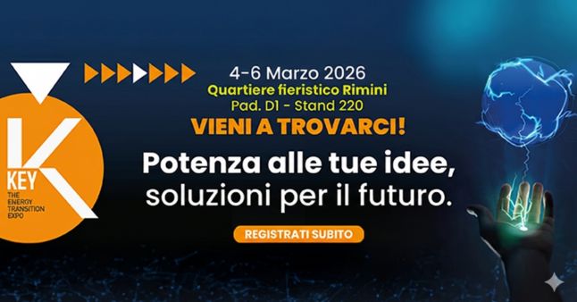 KEY - The Energy Transition Expo è il più importante evento europeo dedicato alle tecnologie, ai servizi, alle soluzioni integrate per l’efficienza energetica e le energie rinnovabili in Italia e nel bacino del Mediterraneo. Prenota subito il tuo biglietto e vieni a visitare il nostro stand!