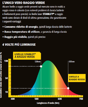 Le livelle laser sono disponibili anche nella versione a raggio verde, molto più visibile.